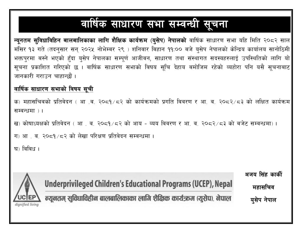 Notice of Annual General Meeting (AGM) – UCEP Nepal